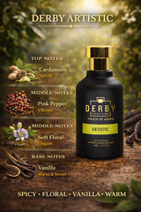Artistic is a creative and captivating 6–8 hour lasting fragrance that opens with a lively burst of spice from cardamom and pink pepper. A soft floral heart adds elegance and charm, while smooth vanilla wraps the scent in warm sweetness. Balanced, expressive and beautifully refined, Artistic leaves a memorable trail that feels stylish, modern and full of personality.