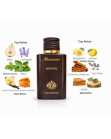 Illuminati Brown opens with a comforting trio of nutty, spicy, and citrus freshness, creating an inviting and intriguing start. At its heart, a warm blend of wood, cinnamon, and floral notes adds richness and complexity. The fragrance settles into a deep, smooth base of black vanilla, tonka bean, amber, and patchouli, offering sweetness, warmth, and irresistible character.A perfect choice for lovers of cozy, woody-amber scents with a sensual, long-lasting finish.