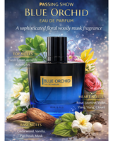 Passing Show Blue Orchid Eau de Parfum is a sophisticated fragrance that blends freshness with timeless elegance. It opens with luminous green notes, airy freshness, and a sparkling aldehydic touch, creating an uplifting introduction. The heart reveals a rich floral bouquet of Rose, Jasmine, Violet, and exotic Ylang, enhanced with a spicy hint of Cloves. The base completes the scent with the warmth of Cedarwood, creamy Vanilla, earthy Patchouli, and sensual Musk,leaving a lasting impression.